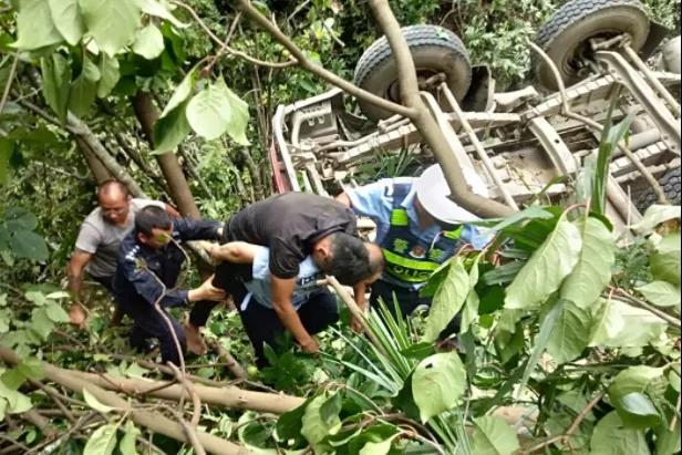 08月07日16時,一輛重型罐式貨車在云南省昭通市永善縣蓮峰鎮(zhèn)文潭村毛拱橋路段一急彎處,與對向行駛的一輛重型罐式貨車會車時,右后輪駛出路面,車輛翻到30余米的深谷。 接到出警指令后,蓮峰鎮(zhèn)派出所所長郝正德、交警中隊長馬宏率民警輔警共12人趕赴文譚村交通事故現(xiàn)場,隨即聯(lián)系蓮峰鎮(zhèn)衛(wèi)生院派出救護車和醫(yī)務(wù)人員趕往救助。 當(dāng)民警趕到現(xiàn)場時,發(fā)現(xiàn)山谷十分陡峭,谷深約30米,駕駛員被困在嚴(yán)重變形的駕駛室,不知生死。因車輛離谷底還有五六米距離,駕駛室被懸在空中無著力點。郝所長急中生智,安排救援人員攀著樹枝進入駕駛室,里面只有駕駛員1人,已經(jīng)昏迷不醒,但還有呼吸。 這時候,路過的數(shù)名駕乘人員也參加到救援隊伍,迅速形成了一支20多人的救援隊伍。駕駛員被小心翼翼移除駕駛室后,郝所長將他背在肩上。救援隊伍攀著樹枝、野草、巖石等,你拉我扶,以背著傷者的郝所長為核心著力點,在懸崖峭壁慢慢往上攀爬。天氣炎熱,汗水濕透了他們的衣服。 經(jīng)過40分鐘努力,傷者被成功救上了公路,由急救的醫(yī)療人員緊急處理后,直接將送往昭通市第一人民醫(yī)院救治。 經(jīng)查,駕駛員高某欣駕駛重型罐式貨車滿載水泥,從蓮峰鎮(zhèn)向大興鎮(zhèn)方向行駛,當(dāng)車行至蓮峰鎮(zhèn)文譚村毛拱橋急彎路段,突遇對向駛來一輛重型罐式貨車,因山區(qū)彎道,路面狹窄,高某欣在會車過程中,右后輪駛出路面,車輛翻下30米深谷。幸運的是,在事故中駕駛員高某欣只是被震暈,傷情不重,經(jīng)醫(yī)院搶救,目前已脫離生命危險。