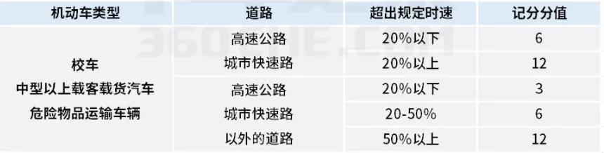 很明顯,新版規(guī)定將該項(xiàng)記分處罰,由12分降至9分。并且,即將開始執(zhí)行的記分管理辦法中,對(duì)駕駛校車、中型以上載客載貨汽車、危險(xiǎn)物品運(yùn)輸車輛以外的機(jī)動(dòng)車(其他機(jī)動(dòng)車),在高速公路、城市快速路以外的道路上行駛超過規(guī)定時(shí)速50%以上的,由原來的12分降至6分。