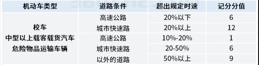 另外一項(xiàng)變化在于,駕駛校車、中型以上載客載貨汽車、危險(xiǎn)物品運(yùn)輸車輛在高速公路、城市快速路以外的道路上行駛超過規(guī)定時(shí)速百分之十以上未達(dá)到百分之二十的,記1分。