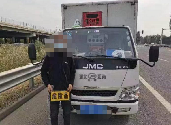 10月12日11時(shí)許,天津公安武清分局交警支隊(duì)楊村大隊(duì)交警在武清環(huán)線與崔楊公路交口處執(zhí)勤時(shí),發(fā)現(xiàn)一輛白色輕型廂式貨車(chē)在遇交警執(zhí)勤時(shí)行駛軌跡異常,欲躲避檢查。執(zhí)勤交警立即攔檢該車(chē),經(jīng)核查確認(rèn)該車(chē)屬;愤\(yùn)輸車(chē)輛,車(chē)上還載有兩桶危化品漆料,但為了不引起交警注意、躲避檢查,駕駛?cè)斯室鈱⑽;愤\(yùn)輸車(chē)輛的警示標(biāo)志摘下放在車(chē)內(nèi)存放。