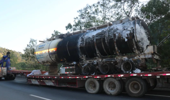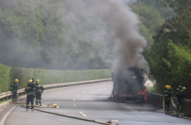 11月21日11時(shí)43分,云南廣昆高速富寧往歸朝方向一輛載有30噸液化硝酸銨的危化品運(yùn)輸車輪胎起火,情況緊急。