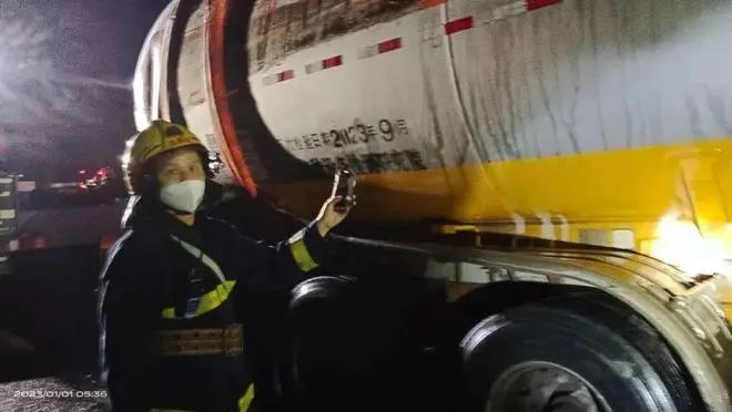 經(jīng)過(guò)國(guó)家危險(xiǎn)化學(xué)品應(yīng)急救援茂名石化隊(duì)的緊急救援,1月1日5時(shí)45分,事故罐車(chē)在消防開(kāi)花水炮掩護(hù)下被扶正。