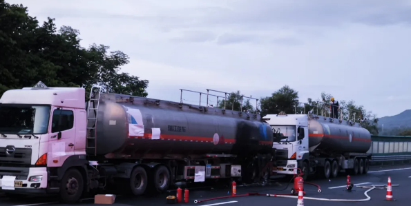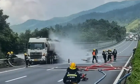 8月1日13時(shí)38分,汕尾市應(yīng)急管理局接到報(bào)告,潮惠高速往惠州方向1250KM+80M(陸河路段)處一輛油罐車有著火冒煙情況。 接報(bào)后,市應(yīng)急管理局高度重視,立即通報(bào)給陸河縣應(yīng)急管理局要求立即派員前往核查處置,并與市公安局、市交通運(yùn)輸局、市消防救援支隊(duì)保持聯(lián)系實(shí)時(shí)了解現(xiàn)場(chǎng)處置情況,通過(guò)高速視頻監(jiān)控實(shí)時(shí)查看現(xiàn)場(chǎng)情況,同時(shí)派出專家組到現(xiàn)場(chǎng)指導(dǎo)處置。 陸河縣成立了由縣政府主要負(fù)責(zé)同志為指揮長(zhǎng)的現(xiàn)場(chǎng)指揮部,公安、應(yīng)急、交通、住建、衛(wèi)健、消防等部門第一時(shí)間趕赴現(xiàn)場(chǎng)開(kāi)展救援工作,并封閉事故路段。 經(jīng)緊急處置,車輛明火于13時(shí)55分被撲滅。經(jīng)現(xiàn)場(chǎng)確認(rèn),油罐車上汽油未發(fā)生泄漏,系左后側(cè)輪胎自燃冒煙起火。 事故發(fā)生后,事發(fā)路段實(shí)行雙向臨時(shí)管控,擁堵車輛全部進(jìn)行疏導(dǎo)。市應(yīng)急管理局及時(shí)協(xié)調(diào)有關(guān)企業(yè)派出接駁車對(duì)事故車進(jìn)行倒罐處理,并派出業(yè)務(wù)骨干和中石化;穼<亿s赴現(xiàn)場(chǎng)進(jìn)行指導(dǎo)。 因罐體油品溫度較高,救援人員持續(xù)幾個(gè)小時(shí)進(jìn)行淋水降溫處理,待溫度降低后進(jìn)行倒罐作業(yè)。事發(fā)油罐車上汽油已于21時(shí)完成倒罐,事發(fā)路段于21時(shí)45分左右恢復(fù)正常通行,至此險(xiǎn)情處置完畢。由于滅火救援工作及時(shí)高效,本次事故未造成人員傷亡。