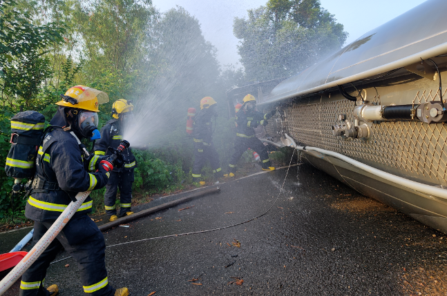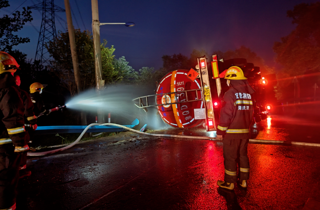 8月12日凌晨,在武漢市新洲區(qū)G318國道鳳凰鎮(zhèn)陳添奇村段,一輛實載約33噸甲醇的重型半掛牽引車發(fā)生側(cè)翻。武漢消防緊急調(diào)派消防員趕赴現(xiàn)場處置。 當(dāng)天,武漢市消防救援指揮中心接到報警后,迅速調(diào)派永安大道站出動4輛消防車、20名消防員趕赴現(xiàn)場。消防員到達(dá)現(xiàn)場后,發(fā)現(xiàn)一輛十多米長的槽罐車整體側(cè)翻在道路一旁,罐體一側(cè)不斷有液體滲出,空氣中彌漫著刺鼻氣味。消防員立刻對周邊實施警戒,并設(shè)置水槍陣地對罐體泄露部位出水進(jìn)行稀釋。 隨后,公安、環(huán)保、街道等相關(guān)部門及應(yīng)急危化品專家相繼趕到現(xiàn)場。在應(yīng)急;穼<业慕ㄗh下,先后調(diào)動2輛大功率吊車,并聯(lián)合交管部門對該路段進(jìn)行雙向臨時交通管制,F(xiàn)場救援人員在專家指導(dǎo)下,實施“冷卻、扶正、倒罐、轉(zhuǎn)運(yùn)”的處置方案。在倒罐過程中,消防員用水槍不間斷進(jìn)行稀釋保護(hù)。 最終,經(jīng)過6個多小時連續(xù)奮戰(zhàn),33噸甲醇順利完成倒罐,并成功轉(zhuǎn)移至安全地帶。消防員在仔細(xì)檢查確認(rèn)現(xiàn)場無危險后撤離。目前,事故原因還在進(jìn)一步調(diào)查中。