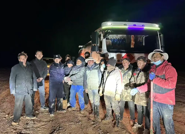 5月20日晚17:00時(shí)許,西藏雙湖縣公安局措折羌瑪鄉(xiāng)派出所接到緊急報(bào)警:一輛前往本鄉(xiāng)鎮(zhèn)送油的油罐車,在行駛至3村附近時(shí),因道路泥濘,車輛不慎駛?cè)肽酀糁斜焕,急需救援。接警后,派出所立刻響?yīng),迅速集結(jié)救援力量、攜帶專業(yè)救援設(shè)備,火速趕赴現(xiàn)場。到達(dá)現(xiàn)場后,民警發(fā)現(xiàn)滿載汽油的油罐車因自身重量大,深陷泥濘,普通車輛難以實(shí)施救援。民警隨即從2村和3村,緊急協(xié)調(diào)大貨車前來支援。 考慮到油罐車過重,直接拖拽存在安全隱患,民警便制定“減重緩?fù)稀狈桨,調(diào)配皮卡車,裝載油桶,將油罐車內(nèi)汽油逐步抽取轉(zhuǎn)運(yùn),最終抽出24桶散裝汽油;同時(shí),組織人員在附近采集沙子,裝填130余袋塑料袋,鋪設(shè)在救援路線上,增強(qiáng)車輛與地面的摩擦力,并將大貨車與被困油罐車通過鋼絲繩相連進(jìn)行拖拽。最終,在民警與全體救援人員的緊密配合下,經(jīng)過長達(dá)12小時(shí)的連續(xù)奮戰(zhàn),成功將深陷泥濘的油罐貨車解救出來。
