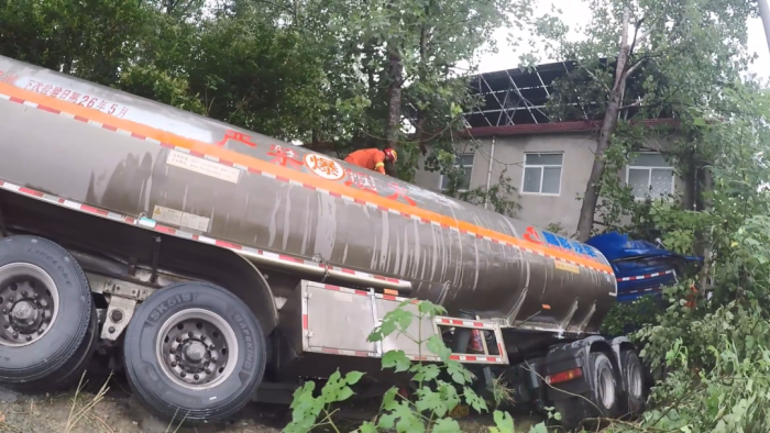 6月7日11時許,淮南市大通區(qū)206國道萬家崗村路段發(fā)生驚險一幕,兩輛大貨車在雨中行駛時,因路面濕滑,避讓不及發(fā)生碰撞。其中載有30余噸汽油的油罐車側翻至路邊樹林,駕駛員被困變形駕駛室,情況萬分危急。 事故現(xiàn)場可見粉罐車橫亙路中,駕駛室完全損毀,油罐車則側翻在距民房僅數(shù)米的樹林間,車頭嚴重變形且油箱破裂漏油。消防人員立即采取"雙線作戰(zhàn)",一組使用液壓破拆工具營救被困司機,另一組鋪設泡沫水帶覆蓋泄漏油品。經(jīng)1小時緊張救援,被困司機成功脫險送醫(yī),據(jù)粉罐車司機介紹,事發(fā)時雙方都沒有看到對方的車輛,等反映過來時已經(jīng)避讓不及。 隨后,現(xiàn)場調(diào)來了吊車對事故車輛進行轉(zhuǎn)移,對油罐車內(nèi)的汽油開展倒罐作業(yè)排除險情。