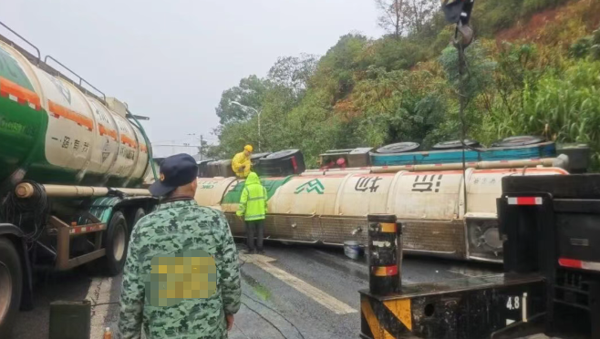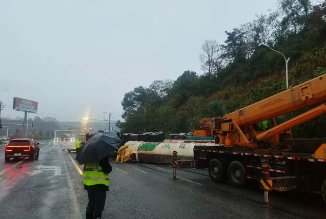 11月3日06時(shí)04分,湖南湘潭市消防救援支隊(duì)接到報(bào)警稱湘潭縣018縣道(往楊家橋收費(fèi)站方向)一罐車發(fā)生側(cè)翻泄漏,車上載有濃度為32%的液堿。指揮中心立即調(diào)派金桂路站共3輛消防車、12名指戰(zhàn)員趕赴現(xiàn)場(chǎng),同時(shí)聯(lián)動(dòng)應(yīng)急、交通、環(huán)保公安等部門協(xié)同處置。06時(shí)22分,消防救援力量抵達(dá)事故地點(diǎn)。 經(jīng)偵查發(fā)現(xiàn),事故車輛為一輛槽罐車,車載約33噸、濃度32%的液堿,行駛過(guò)程中發(fā)生側(cè)翻,目前罐頂入孔處出現(xiàn)少量泄漏。根據(jù)現(xiàn)場(chǎng)情況,帶隊(duì)指揮員立即組織力量在泄漏點(diǎn)設(shè)置水槍,對(duì)泄漏的液堿構(gòu)筑圍堤封堵和封堵下水道,阻止泄漏的液堿進(jìn)一步向外擴(kuò)散,并迅速利用堵漏器材對(duì)泄漏點(diǎn)進(jìn)行封堵。 同時(shí),經(jīng)過(guò)現(xiàn)場(chǎng)指揮部及相關(guān)專家的評(píng)估決策,決定采用對(duì)罐體進(jìn)行切割來(lái)輸轉(zhuǎn)倒罐的方案,進(jìn)行本次事故處置。9時(shí)05分,救援人員使用自帶防爆轉(zhuǎn)料泵、軟管等裝備開始實(shí)施倒罐作業(yè)。經(jīng)過(guò)近4個(gè)小時(shí)的持續(xù)奮戰(zhàn),9時(shí)51分,救援人員成功將事故車槽罐內(nèi)液堿轉(zhuǎn)移至備用槽罐,順利完成倒灌作業(yè)。經(jīng)反復(fù)檢測(cè)確認(rèn),現(xiàn)場(chǎng)無(wú)危險(xiǎn)后,全體人員安全撤離。